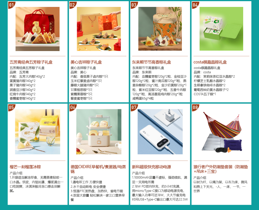 N選1粽子券,涵蓋多品牌粽子,持券人任選一款,不同口味,甜咸自由,提升收禮滿意度。