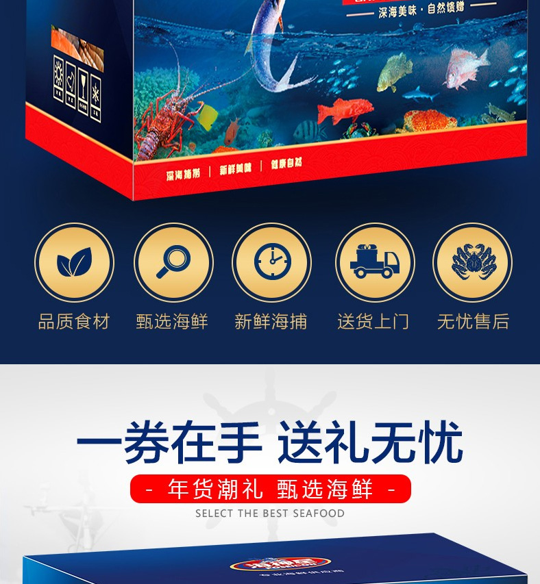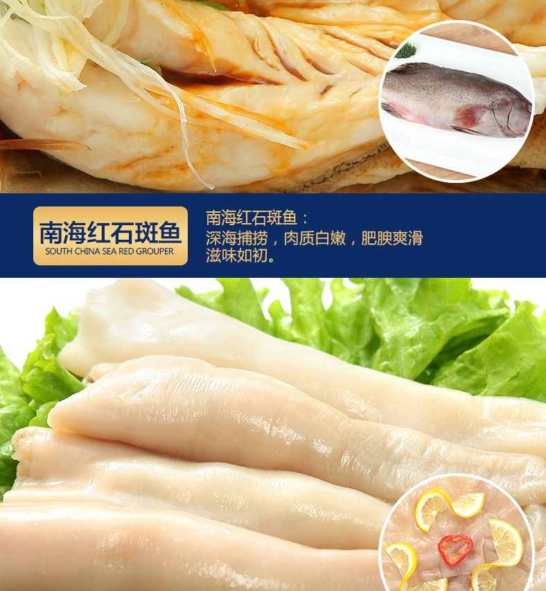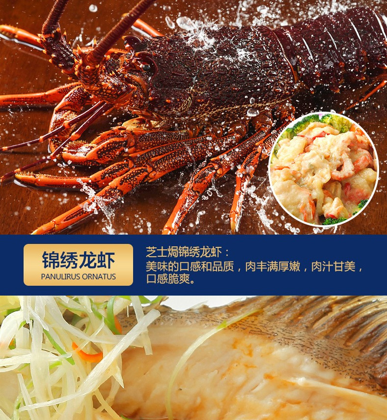 1 青島大蝦、2 深海鱸魚、3 蒜蓉粉絲扇貝、4 深海魷魚花、5 凍煮帆立貝、6 東海帶魚段