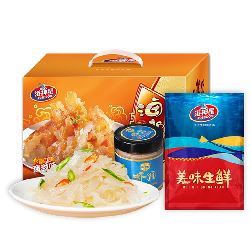 淡干磷蝦250g*2袋、即食海蜇頭320*2袋、即食海蜇絲320g*2袋、海醬王蝦醬500g*2罐