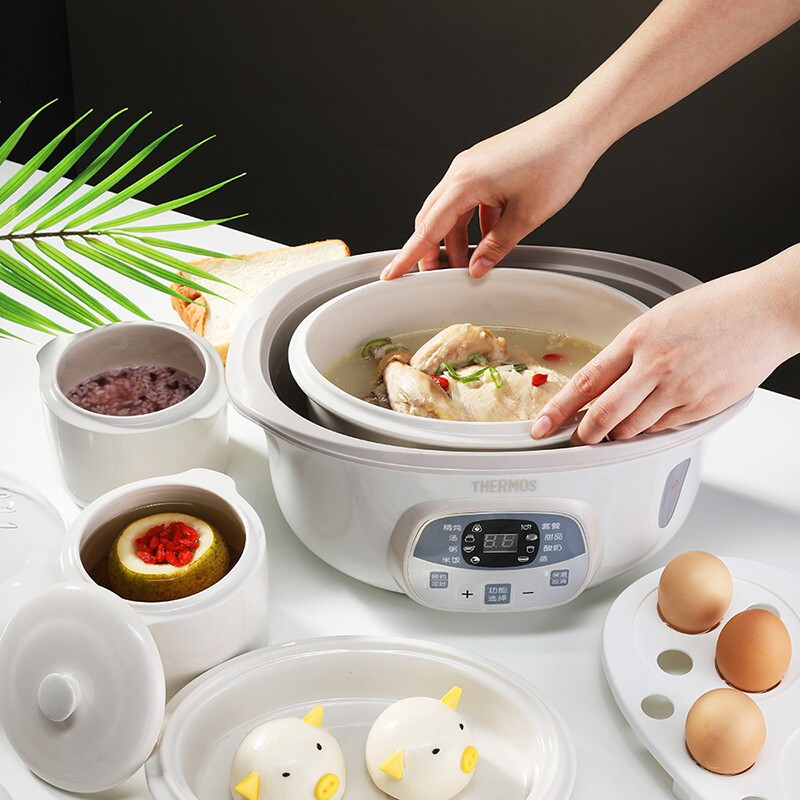 2.多陶瓷內(nèi)膽組合,可同時(shí)蒸燉不同食物。