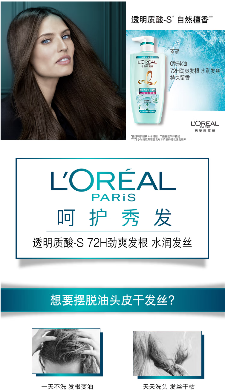 歐萊雅(LOREAL)透明質(zhì)酸水潤潤發(fā)乳500ml