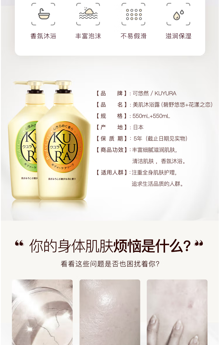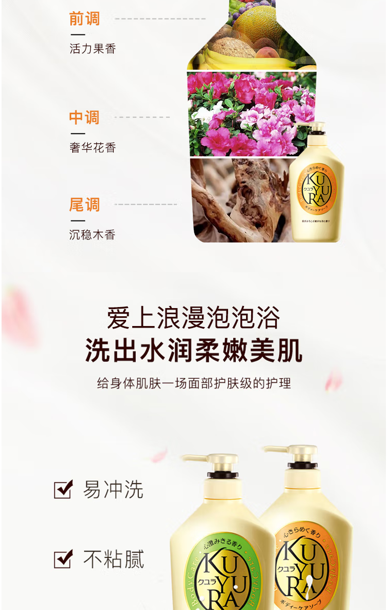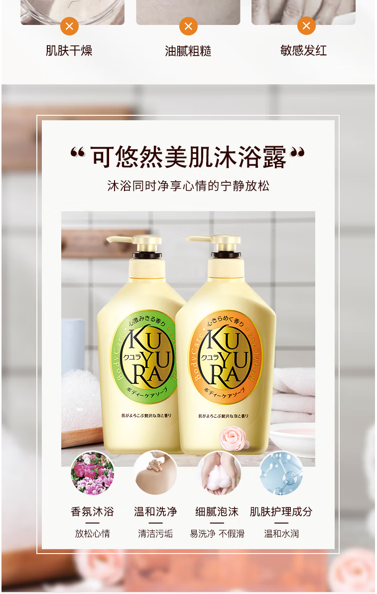首頁 > 美妝個護(hù) > 日化清潔 > 沐浴露 > 可悠然(KUYURA)許佳琪同款沐浴露美肌香氛沐浴液套裝