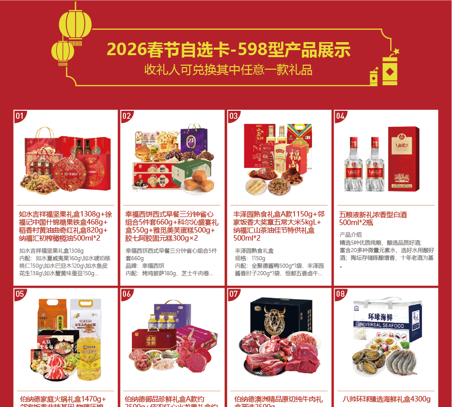 2026春節(jié)禮品卡類型:5698元 │ 3698元 │2698元 │1698元│ 1198元│ 898元│ 598元│ 398元│ 298元 │198元 點(diǎn)擊可查看更多節(jié)日禮品卡內(nèi)容