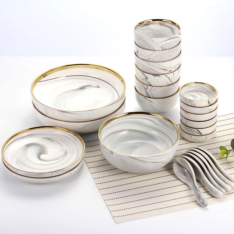 首頁 > 廚房用具 > 廚房用具 > 餐具 > 全瓷時代歐式輕奢金邊餐具套裝