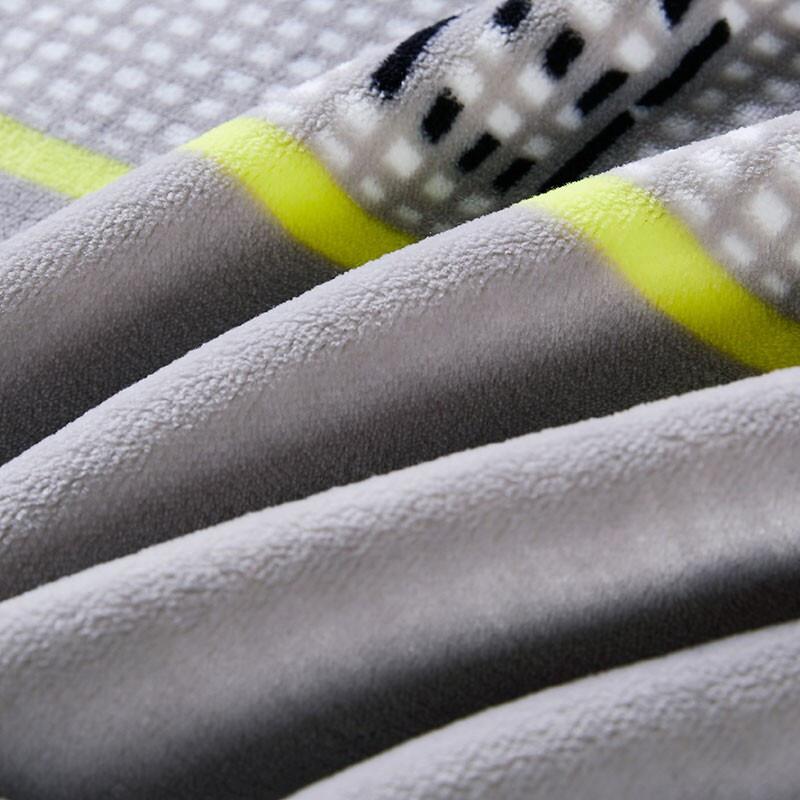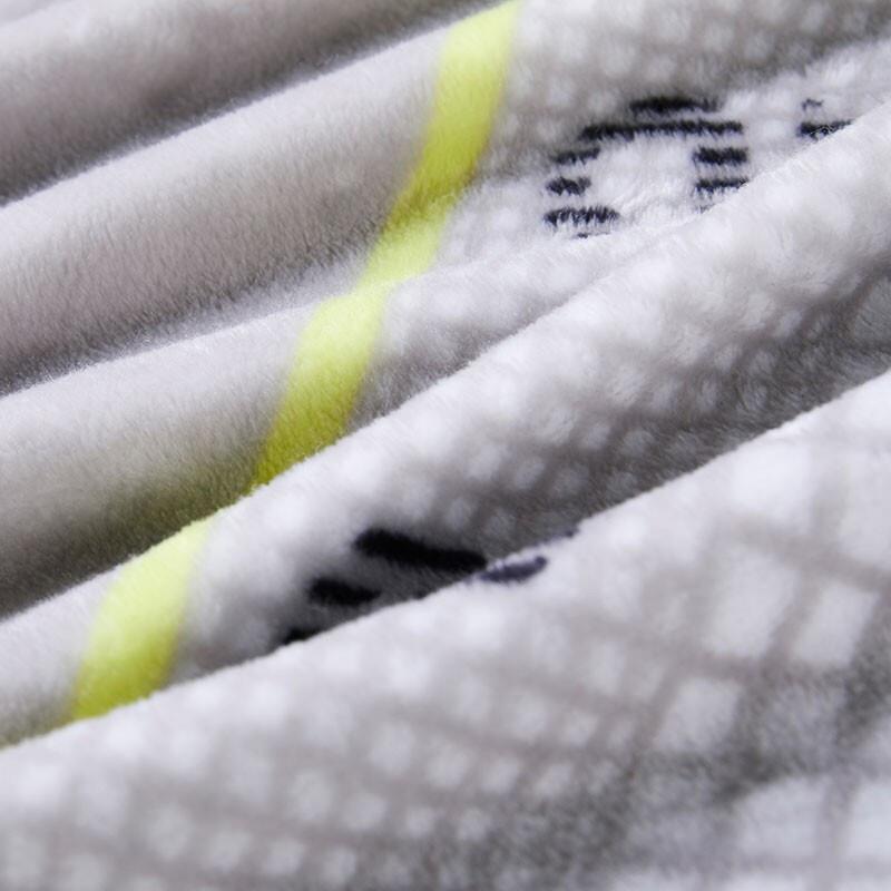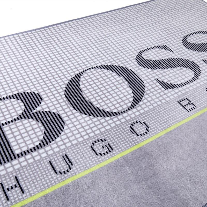 選用大面積的BOSS LOGO搭配淺灰色的基底,并輔以一條明黃色的貫穿線,使整條毯子靈動而富有時尚感。