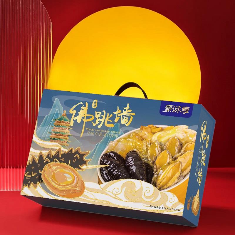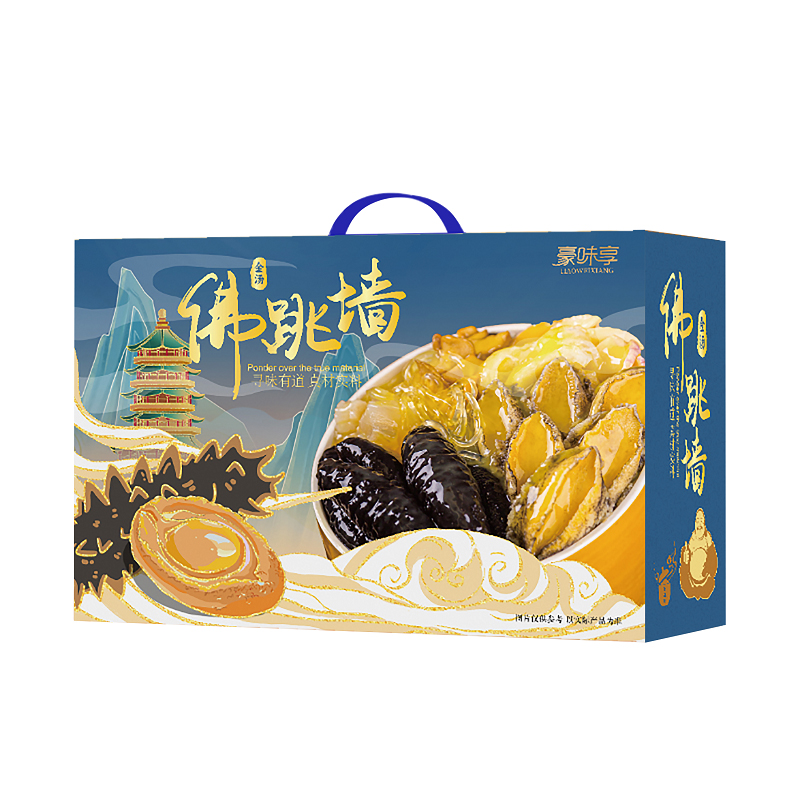 海參,鮑魚,蹄筋,魚肚,花菇,杏鮑菇,貝柱,高湯 儲存方式:-18°冷凍儲存 食用方式:自然解凍后蒸煮食用