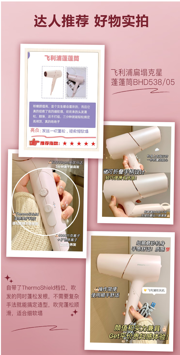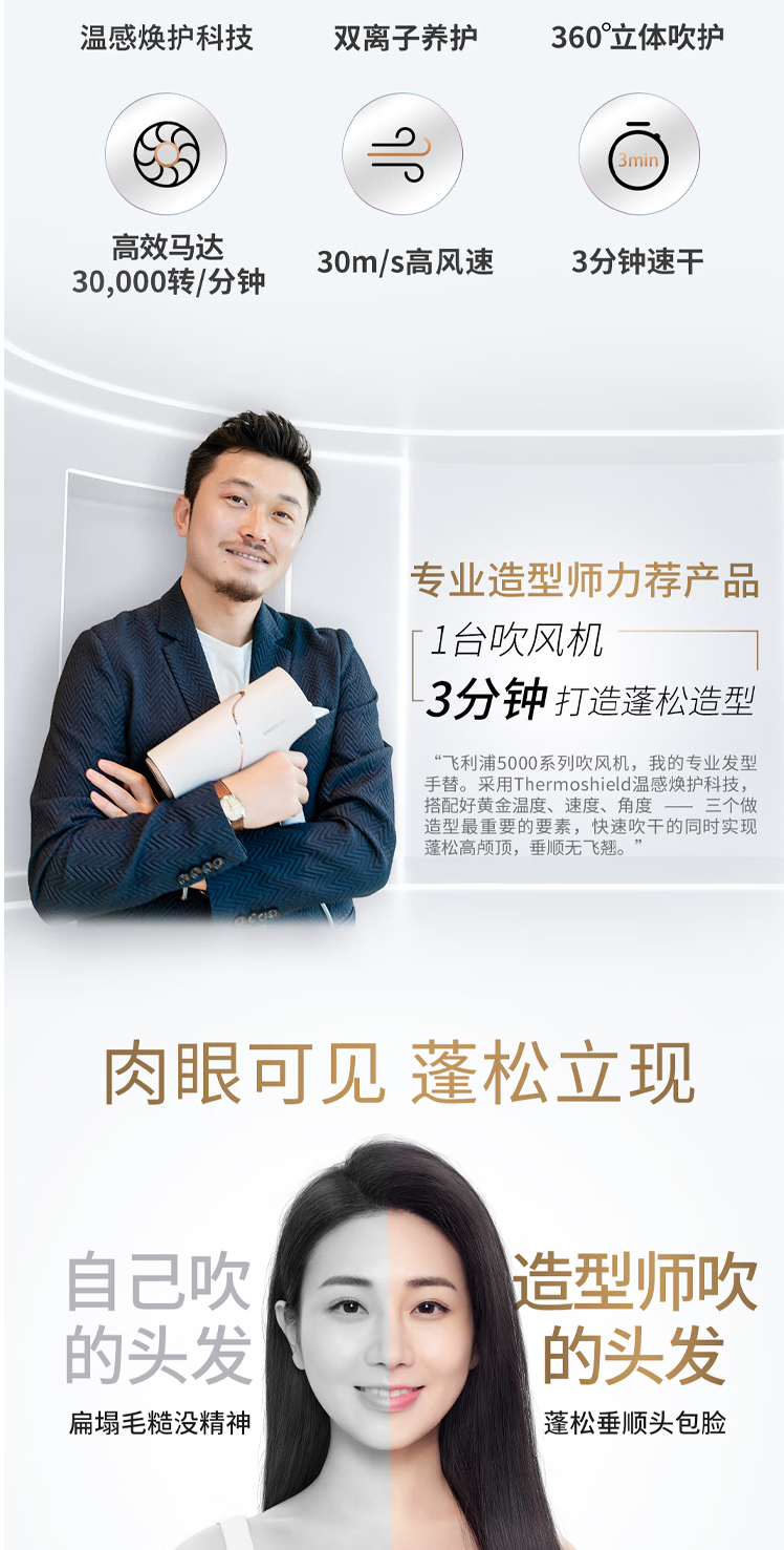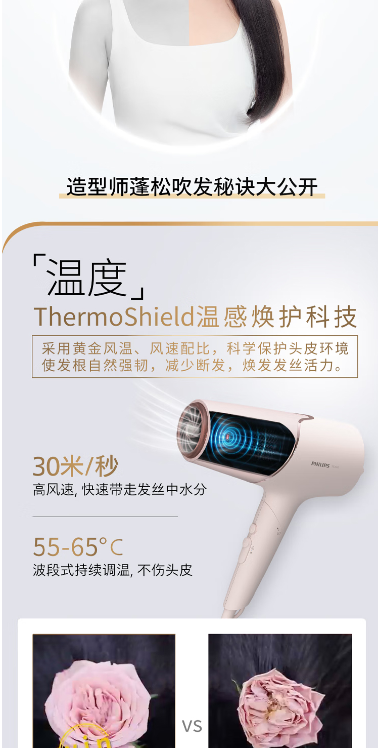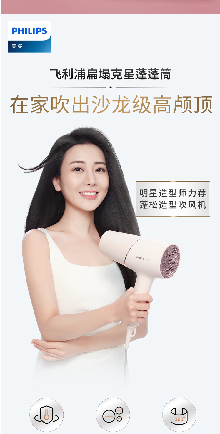 首頁 > 美妝個護 > 美妝個護 > 電吹風 > 飛利浦(PHILIPS)電吹風機 溫感煥護4000萬負離子