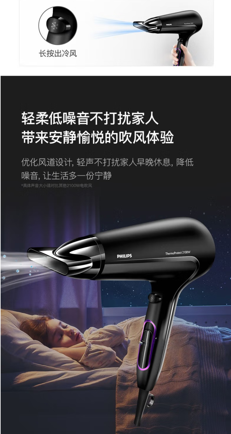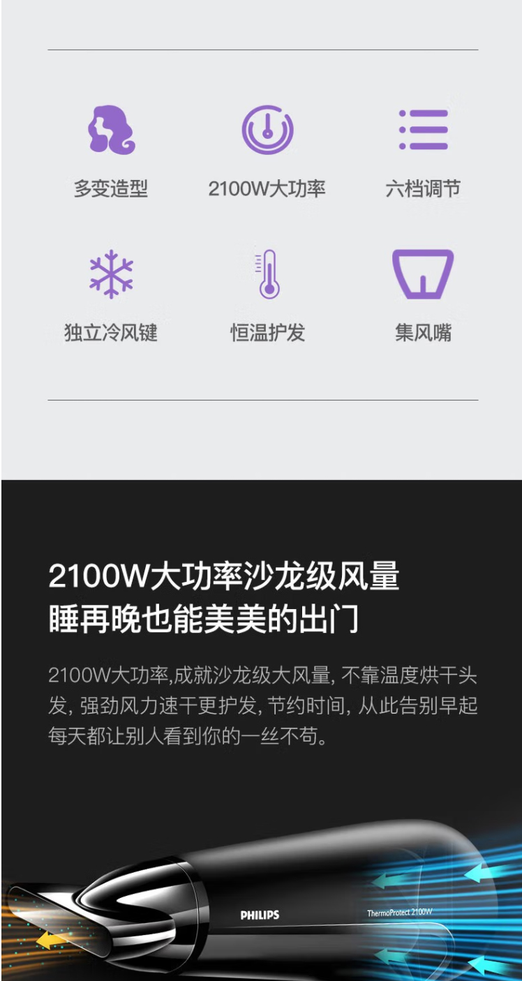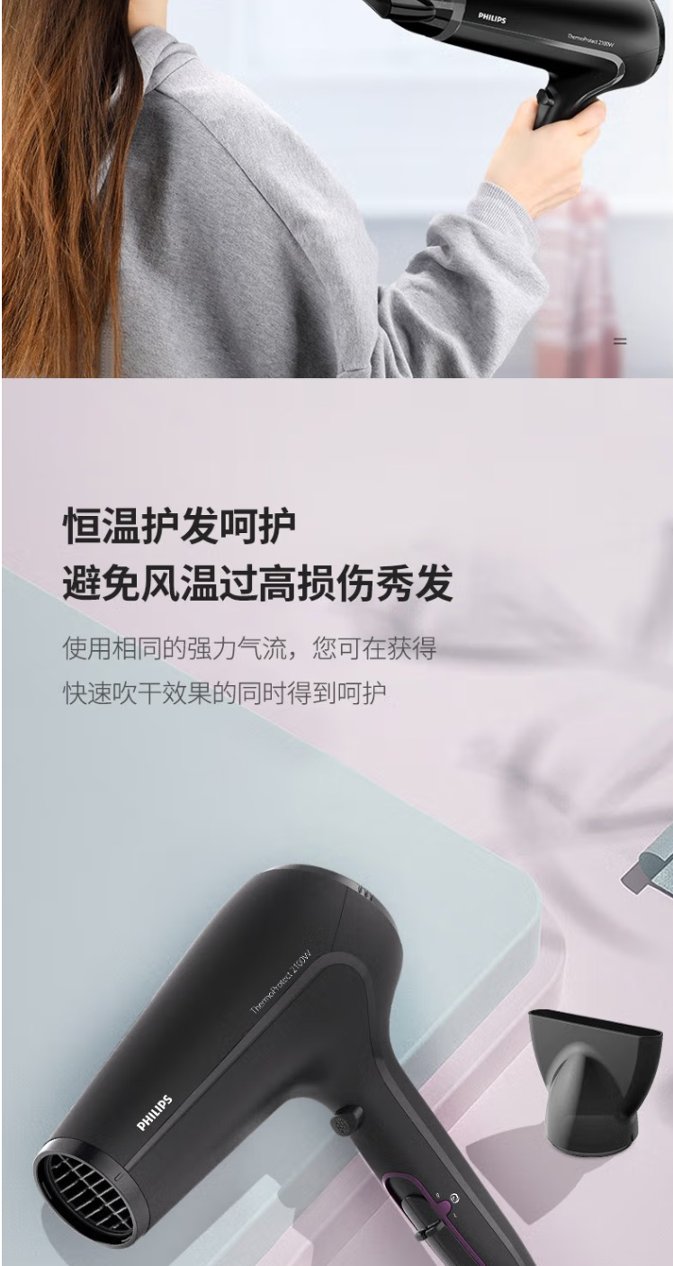 PHILIPS飛利浦吹風機大功率2100W家用恒溫護發(fā)