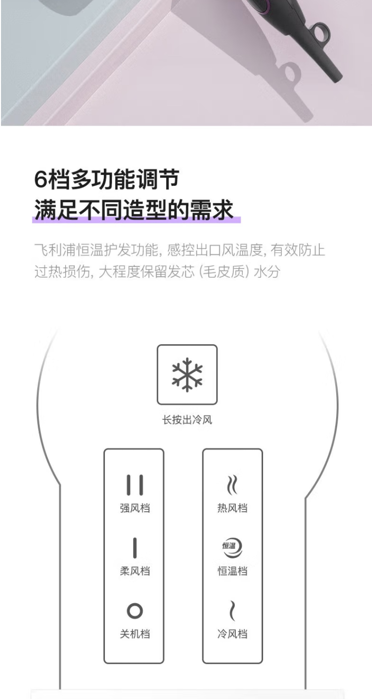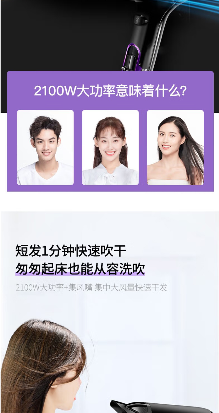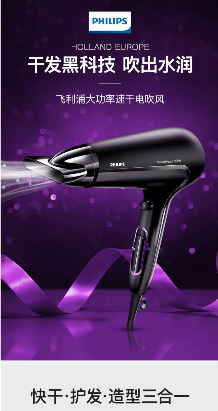 PHILIPS飛利浦吹風機大功率2100W家用恒溫護發(fā)
