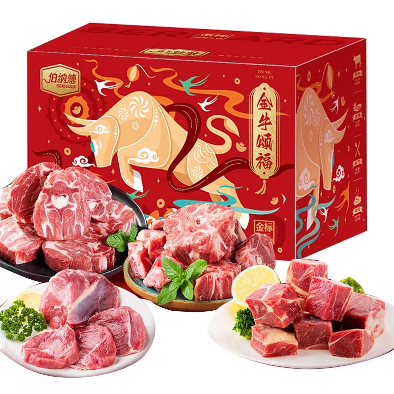 產(chǎn)品規(guī)格:3000g 牛肋排條500g*2 牛脖骨500g 牛肉餡500g 牛肉塊500g 牛腩塊500g