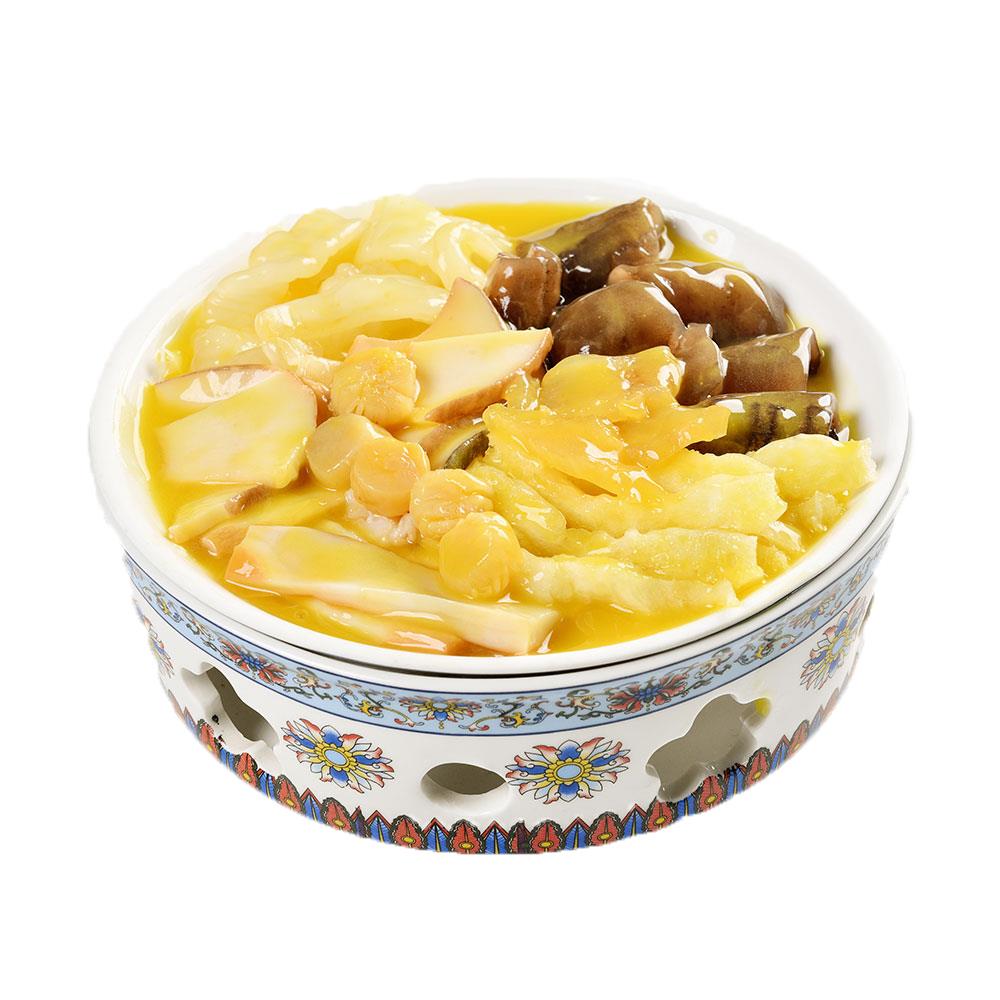 產地:江西 保質期:12個月 貯藏方式:-18℃以下冷凍存儲 規(guī)格:1500g 食用方法:蒸、煮,熟制后食用 配料參考:生活飲用水、海參5塊、鮑魚5只、花菇、花膠(魚肚)、牛蹄筋、鮑螺、蚌絲、瑤柱雞肉、豬肉、冰糖、南瓜、食用鹽雞粉調味料等 配料參考(鮑參翅肚): 固形物含量≥30%
