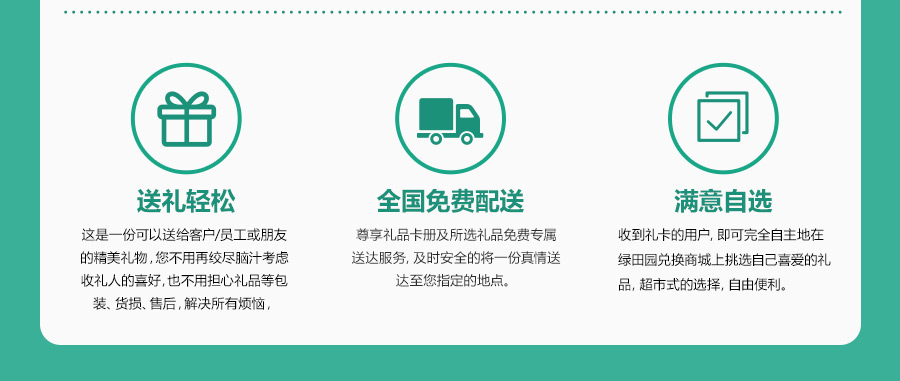 綠田園致力于為客戶提供優(yōu)質(zhì)生態(tài)產(chǎn)品,為滿足客戶禮尚往來的需求,綠田園將高品質(zhì)、健康的品牌粽子精心設(shè)計成禮券的形式,讓更多的人樂享綠色生活。我們?yōu)闈M足顧客不同需求,每張禮券包含品牌食品和高品質(zhì)實用用品組合。持卡人可任選其一,綠田園將為您提供優(yōu)質(zhì)生態(tài)食品配送到家服務(wù)。